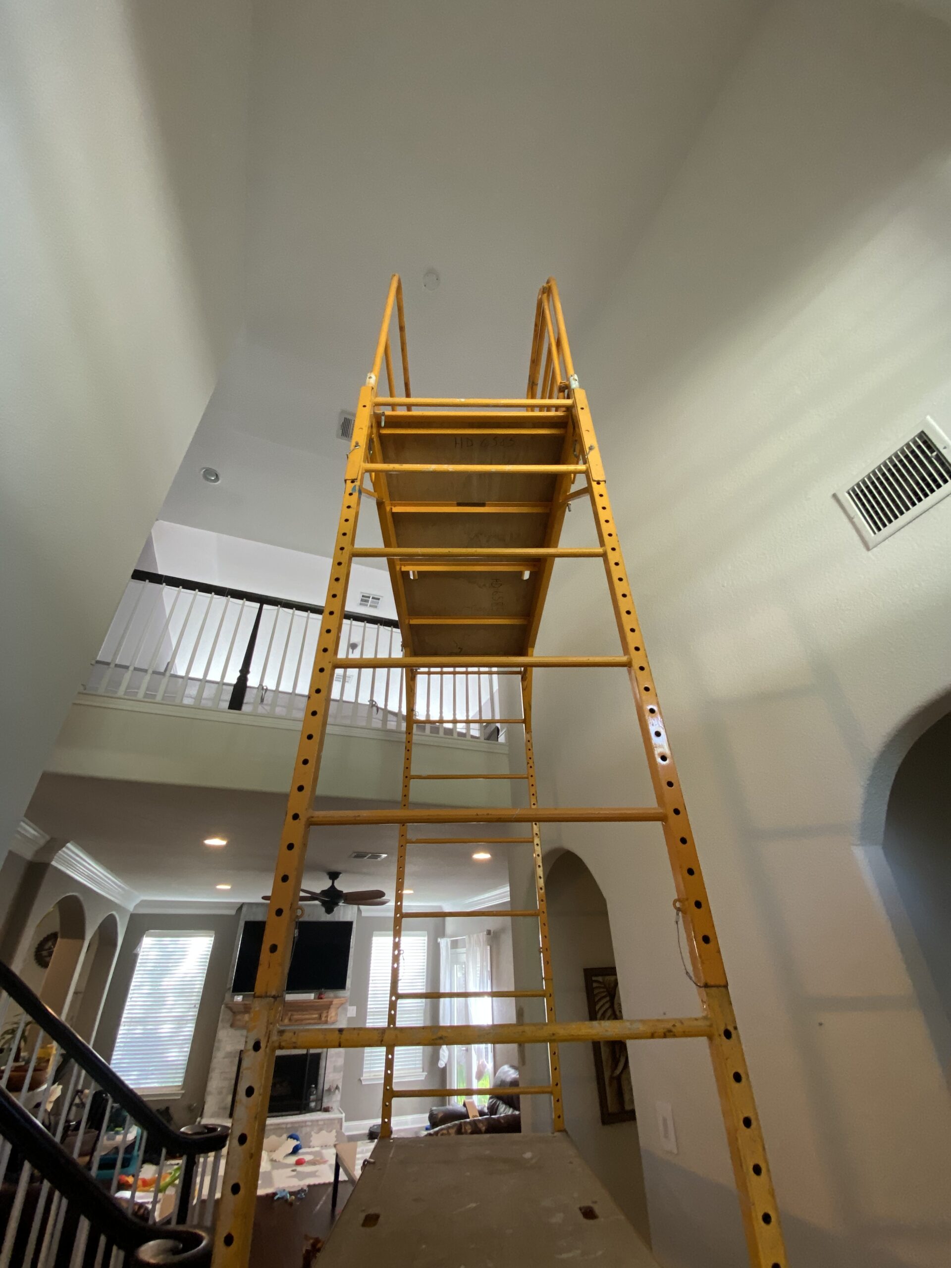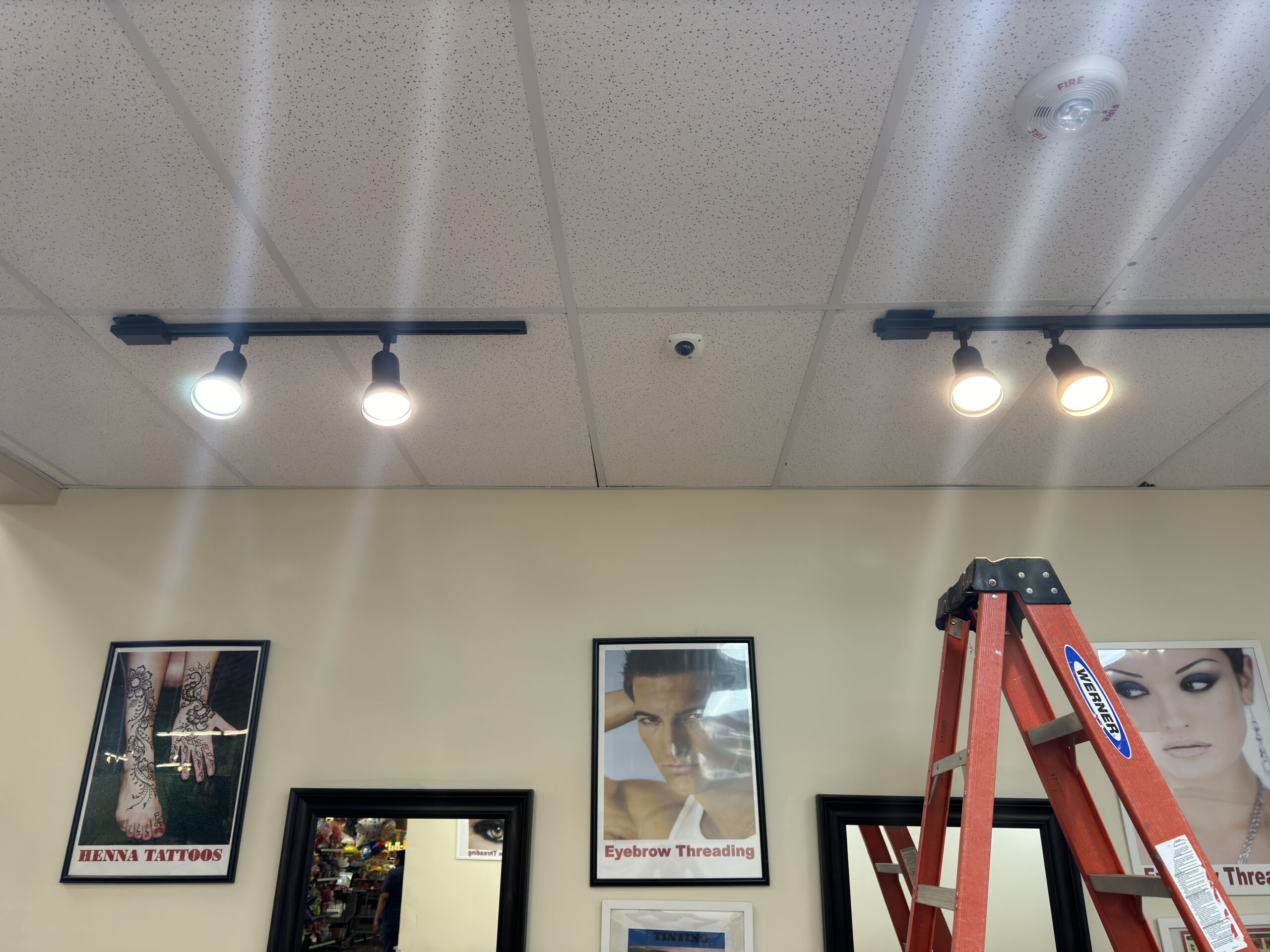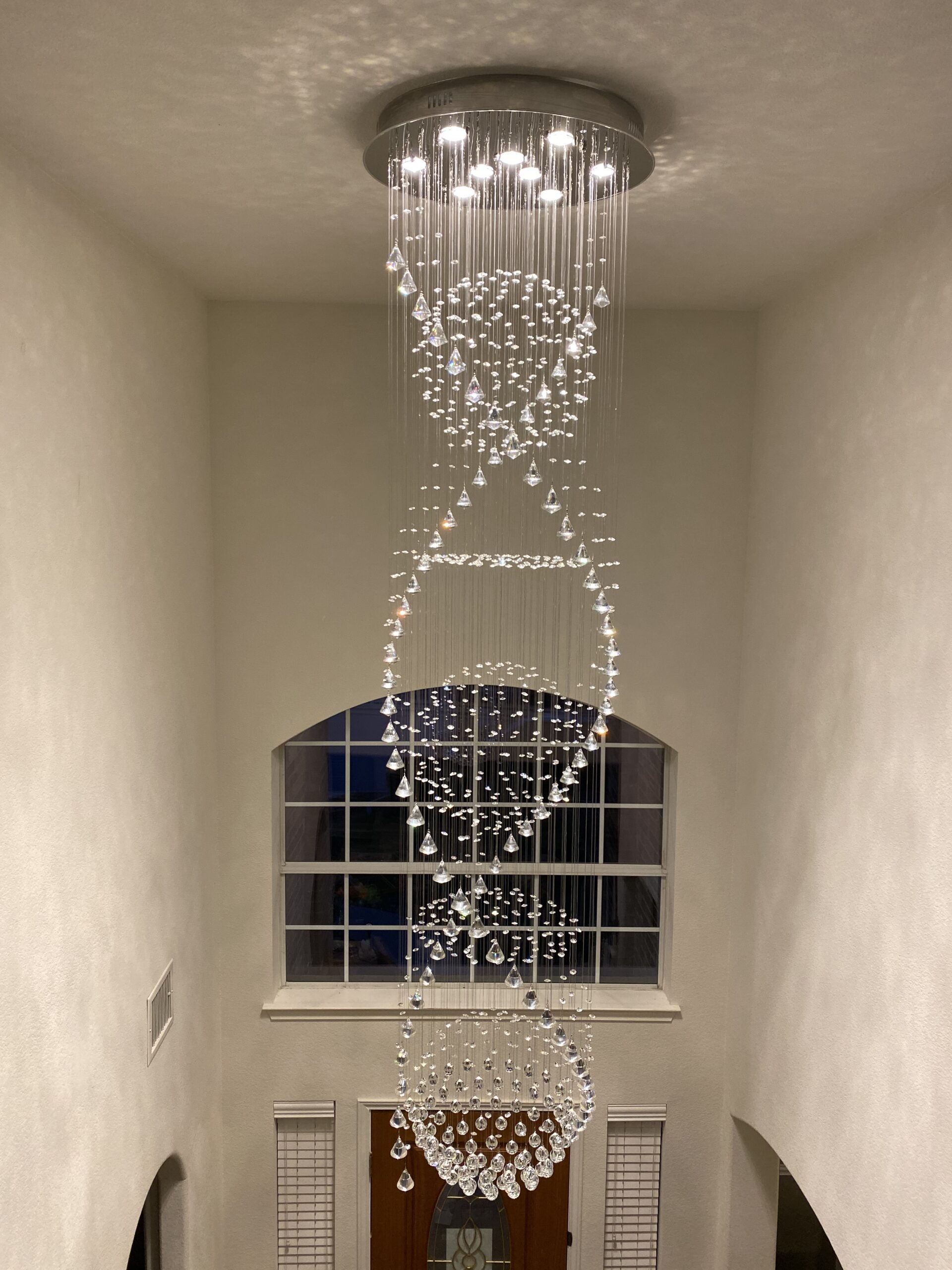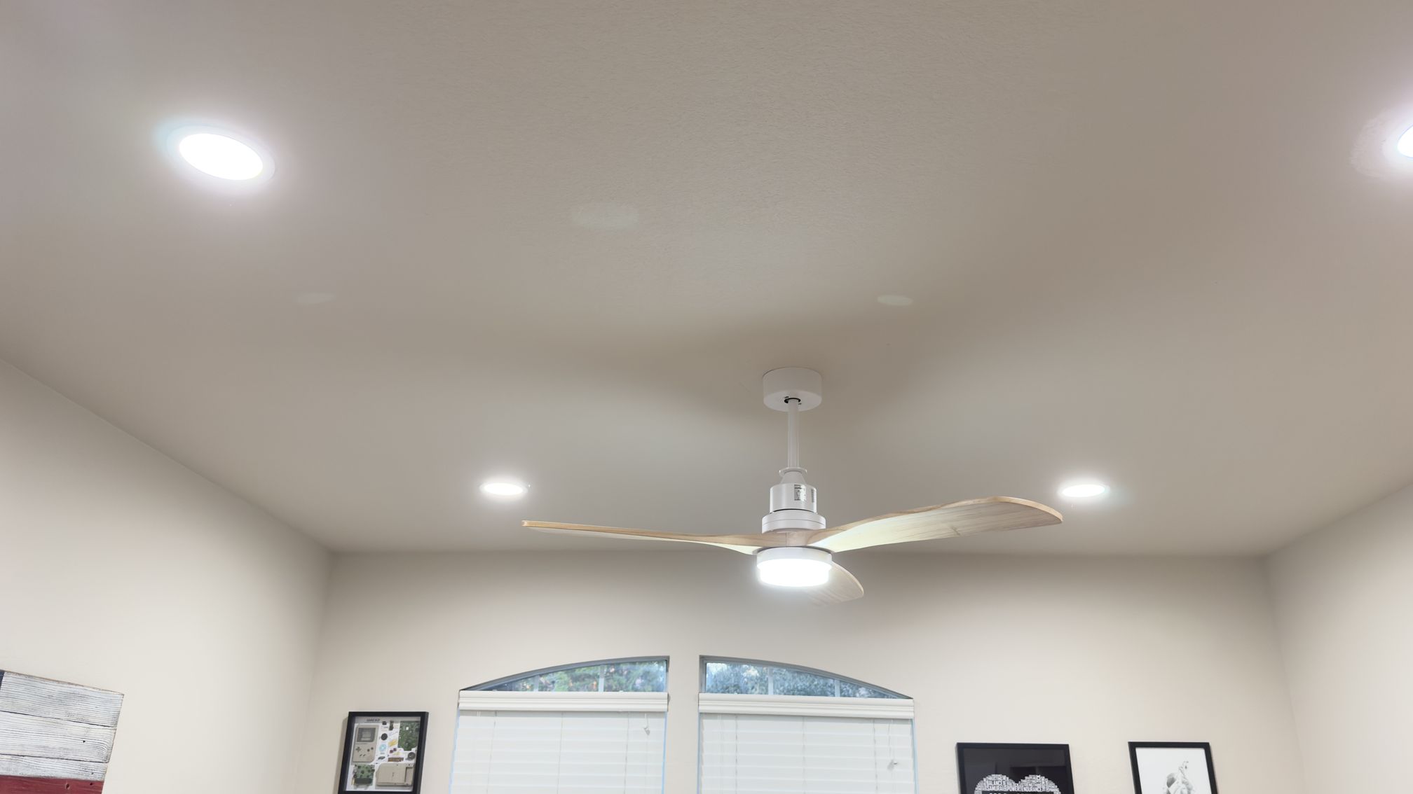 Added a set of LED can lights in specific locations in a client’s living room. Client requested that backdoor light be centered on that door as well as the primary bedroom door. Then the first light be directly above the piano and the remaining two lights be equally spaced between the first two lights.