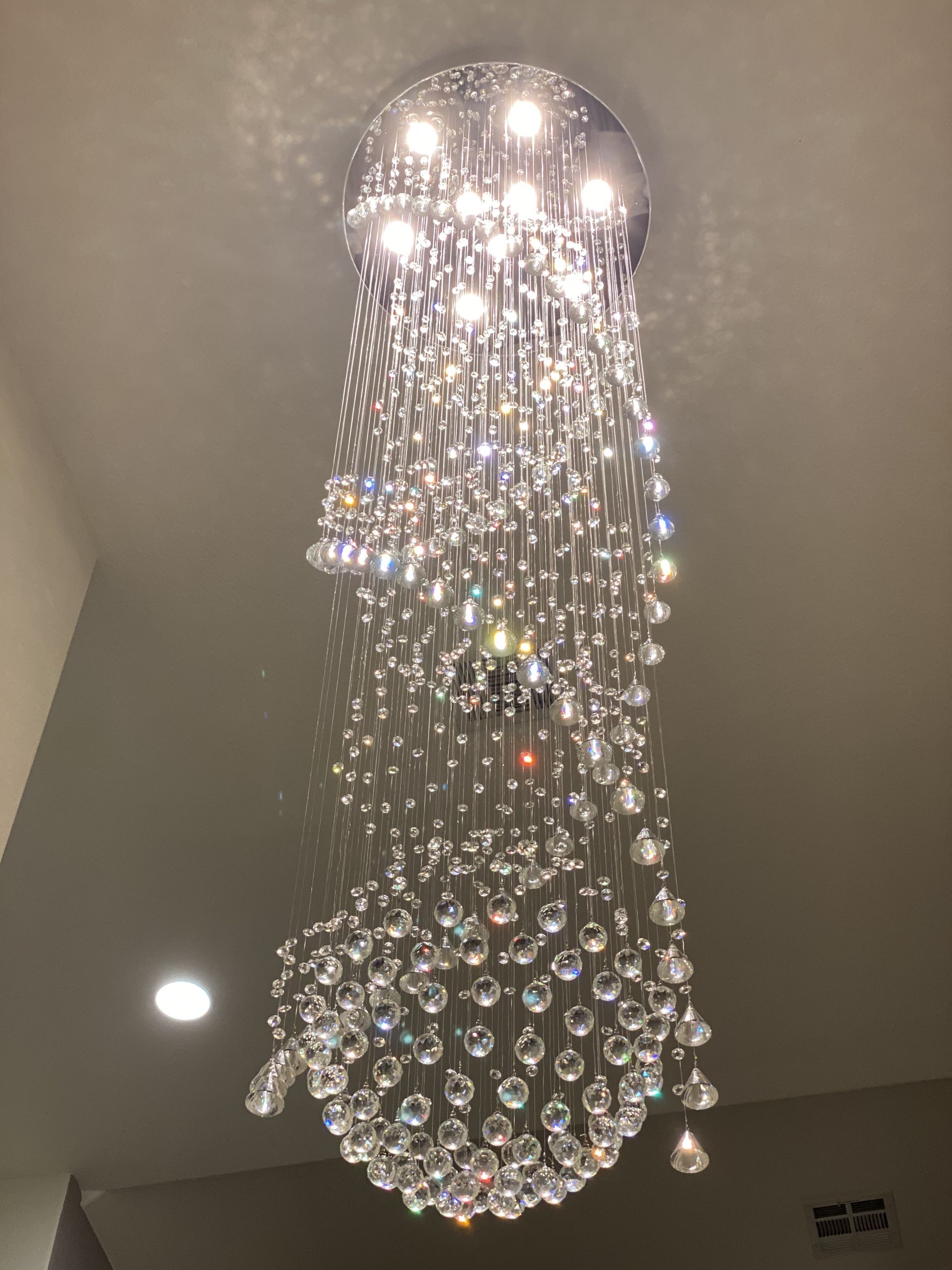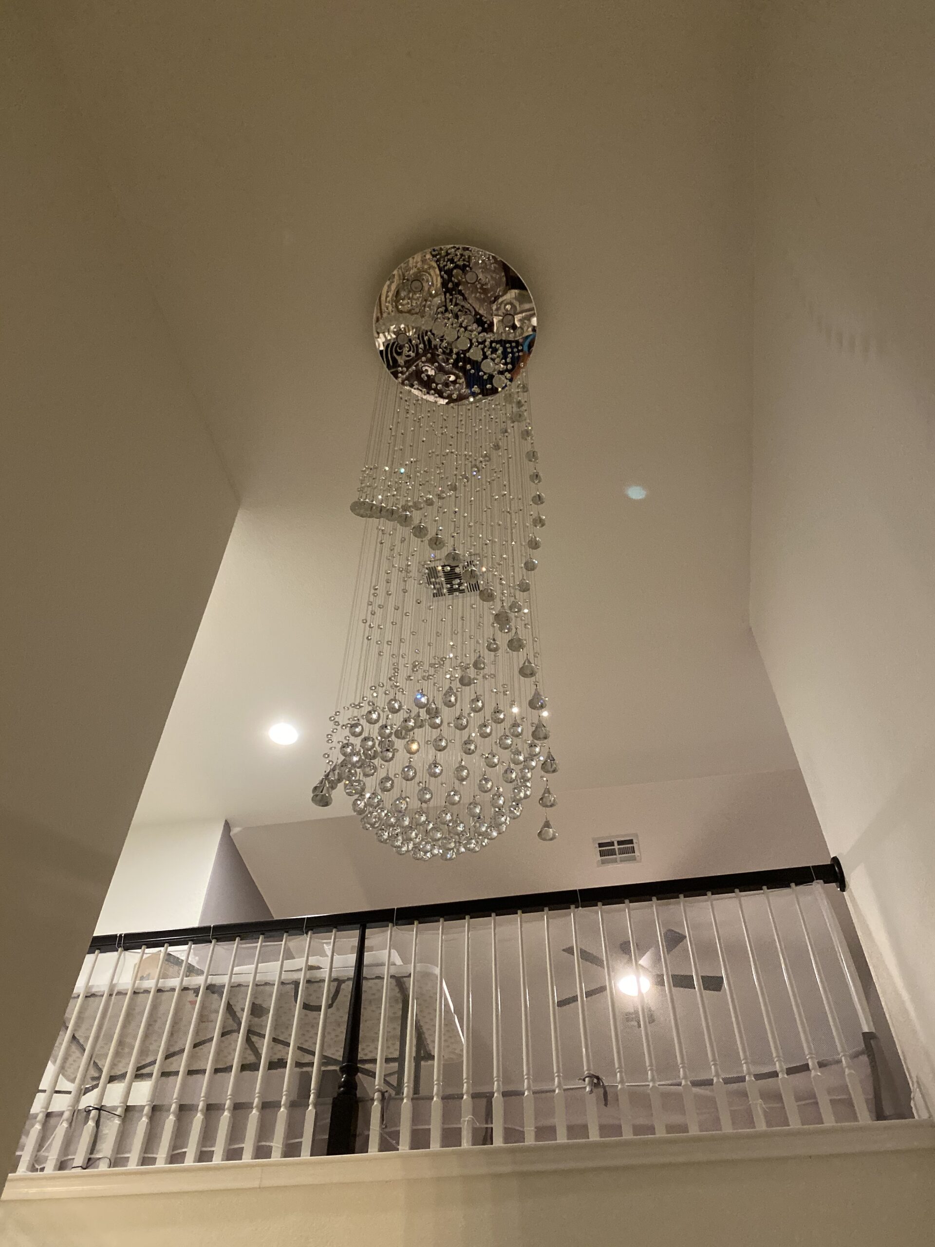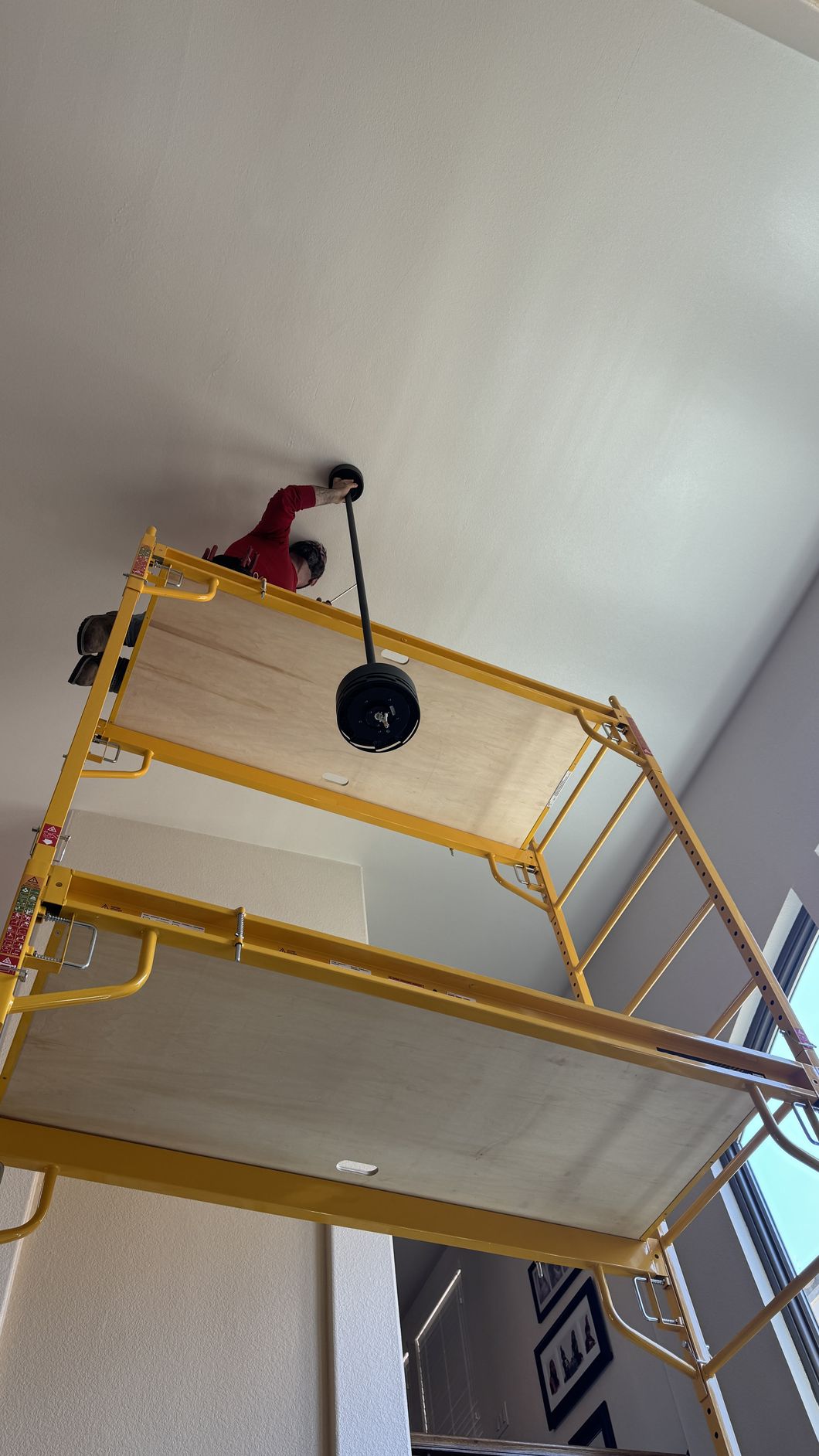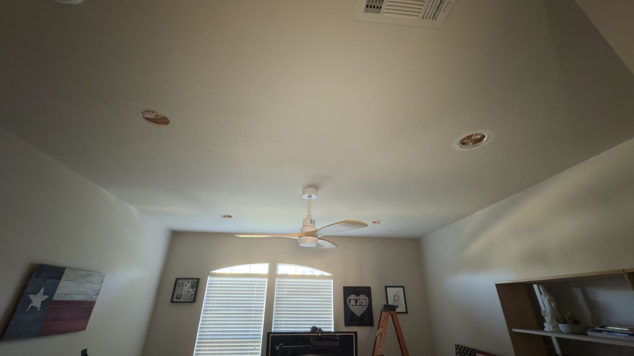 Added a set of LED can lights in specific locations in a client’s living room. Client requested that backdoor light be centered on that door as well as the primary bedroom door. Then the first light be directly above the piano and the remaining two lights be equally spaced between the first two lights.