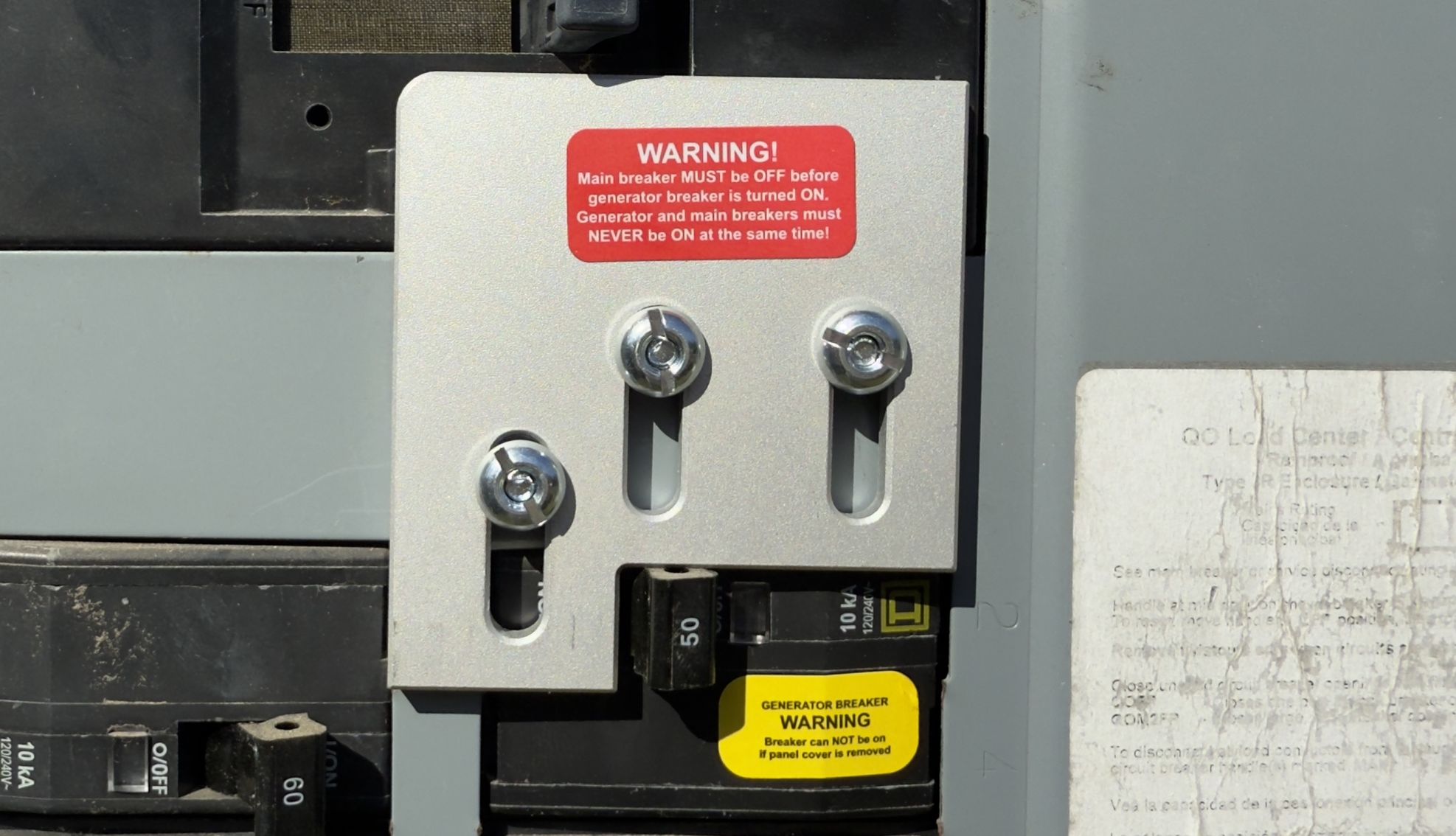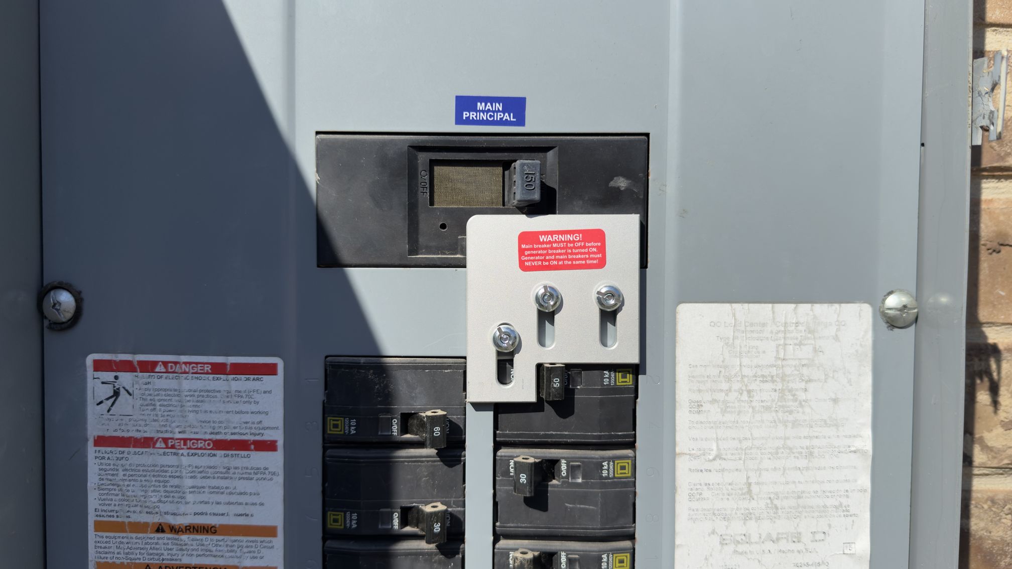 Added a portable generator interlock kit to a home’s circuit breaker panel. This interlock allows for the safe backfeeding of a home with electrical power from a portable generator during a power outage. The interlock also prevents the unsafe condition where the generator sends power back onto the power company’s electrical grid.